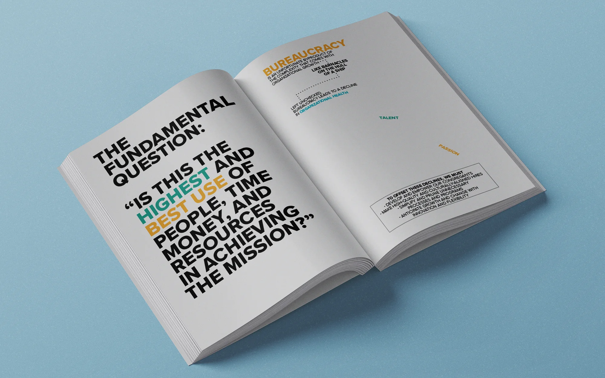Developing the DNA notebook, "Our Culture", provided a resource to all staff to consistently reference the type of organization Forest Hill wants to be. Not wanting scale to cause staff to feel like "cogs in a wheel," they often used the term "Organized Organism". This became the guiding philosophy of the project, forming the content to feel like a peek into someone's sketchbook/notebook around the topics. Tons of white space, and 100 blank pages at the back encouraged it to be an interactive space to take notes and reflections.